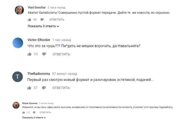Новым «форматом» программы недовольны и обычные пользователи Сети, которые оставляют негативные комментарии под видео.