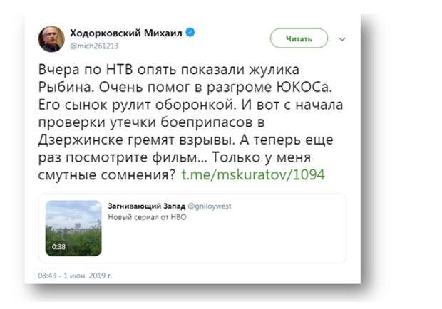 В общем, твит Ходора в очередной раз стал доказательством того, как дорожит своей шкурой и репутацией, пробившей дно, беглый олигарх. Вот только ухищрения, на которые он пошел, чтобы отвлечь от фильма НТВ, только доказали несостоятельность самого преступника.